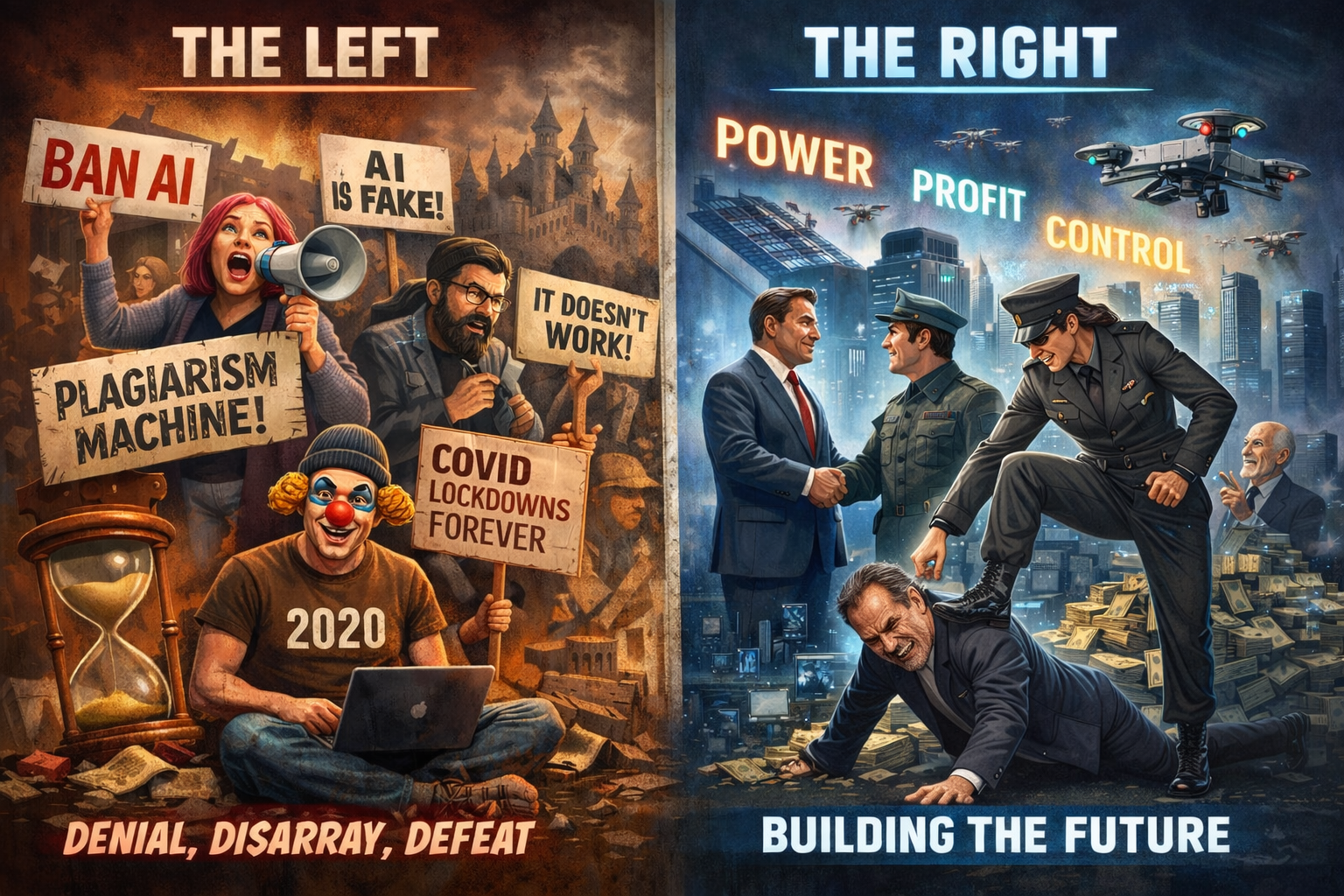 The left should be pushing hard on making sure the productivity gains of AI are shared, that those put out of jobs (which is already happening) are taken care of, that there is a “public” non-corporate AI option, and many other things.