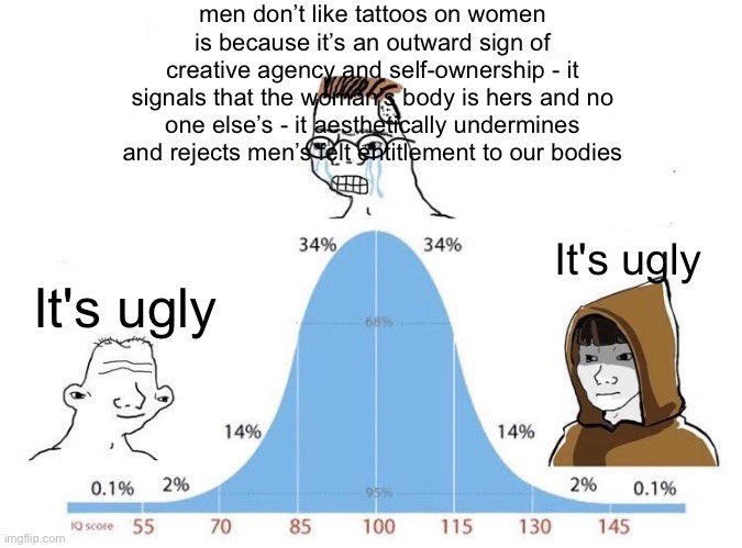 And yes, a lot of women particularly hate Sydney Sweeney because they realize that she’s the woman they could’ve been if they hadn’t ballooned up to 400 pounds and gotten loads of horrid tattoos. Because though Sydney is attractive — as I’ve pointed out before — she’s “normal” attractive. She cleans up really well but does not have a supermodel build, face or physique (unlike someone like Margot Robbie, who does).