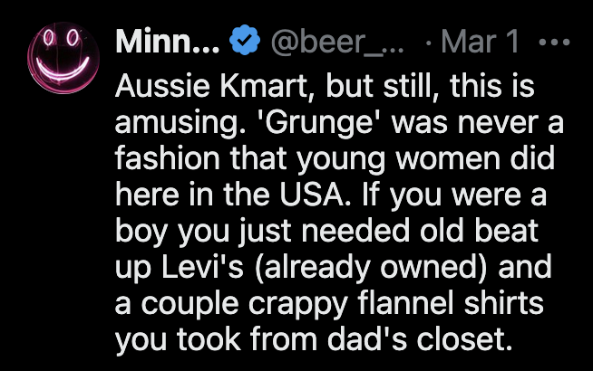 The idea that there was no common women’s grunge look back then is fucking ludicrous and 100% wrong.