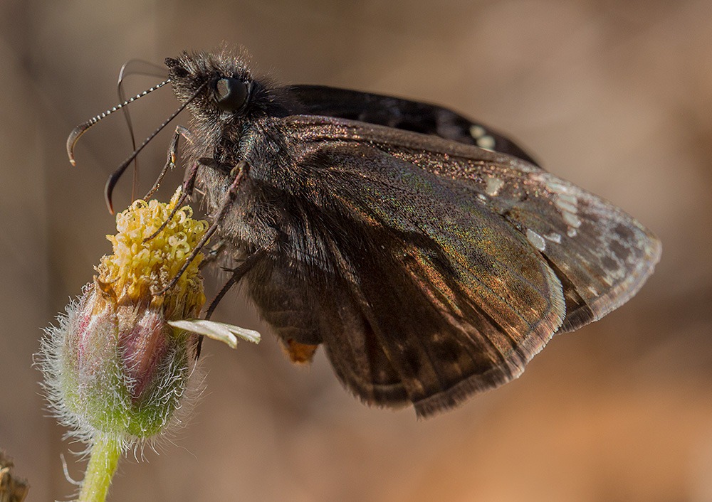 Hereโs the photo of the duskywings โ itโs isnโt that great, but I like it because the 100mm allowed me to see the iridescent sheen on the underside of the wings. Itโs really beautiful.
