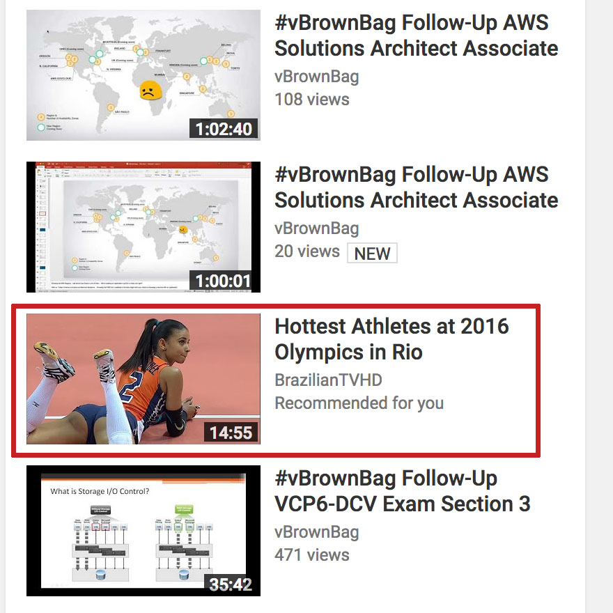 YouTube…why do you recommend this bullshit (boxed in red)? I never watch videos like this and I don’t give a crap about the hottest athletes at the Olympics. Shocker, those people who work hard on their bodies and don’t think two Big Macs and two McFlurries constitute a balanced meal tend to look good.