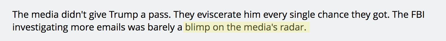 However, I am even more disappointed and saddened that members of the Democratic party are now just as howling at the moon delusional and redistributive of blame as the worst of the right wing conspiracy theorists. It’s been at a remove sociologically interesting to watch how the narrative has shifted in mere days to some small measure of blame-taking to “We did nothing wrong and neither did the media! It was those rednecks and misogynist Nazis, including all the Dems who did not show up to vote for the most uninspiring, neoliberal candidate since ever! Nazis all!”