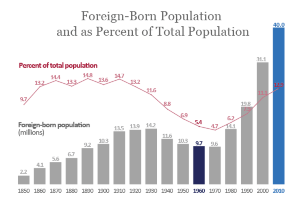 My friend is I think more pro-immigration than I am. I believe it decreases social cohesion and makes leaders like Trump more likely. I doubt Trump would’ve been able to attain power if the foreign-born population were, say, 5% instead of around 13% in 2016. You might blame racism or nationalism or whatever -ism you’d prefer to cite; I’m not making a normative argument here, but rather observing and speculating about behavior on the ground.