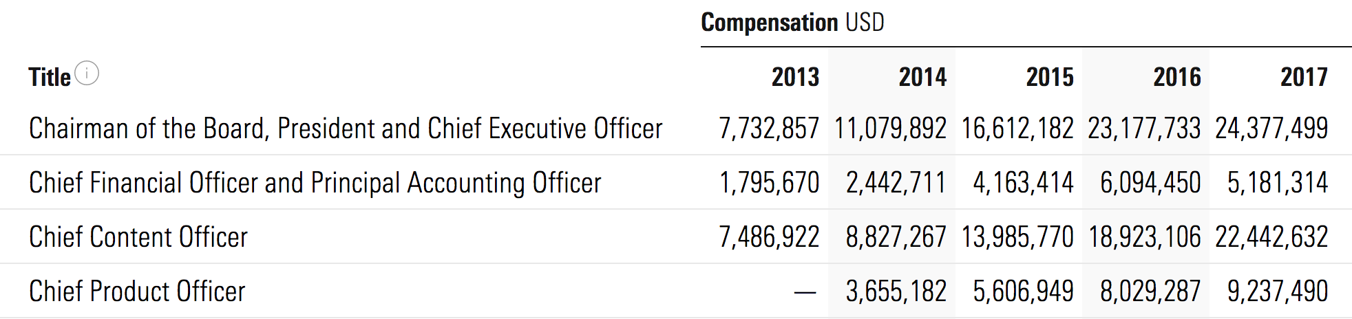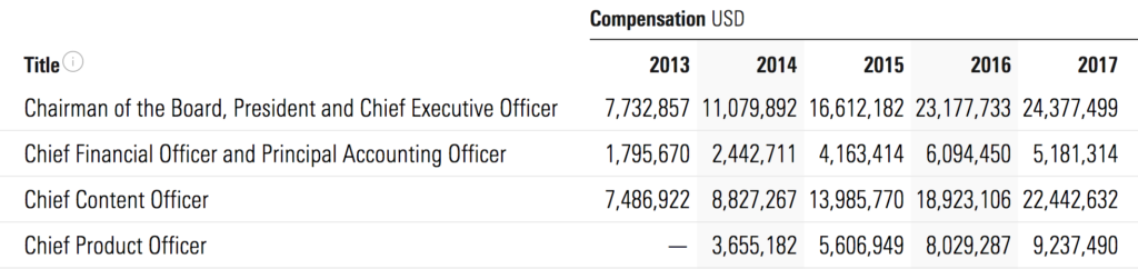 I was looking at information on Netflix stock and came across the executive compensation figures.