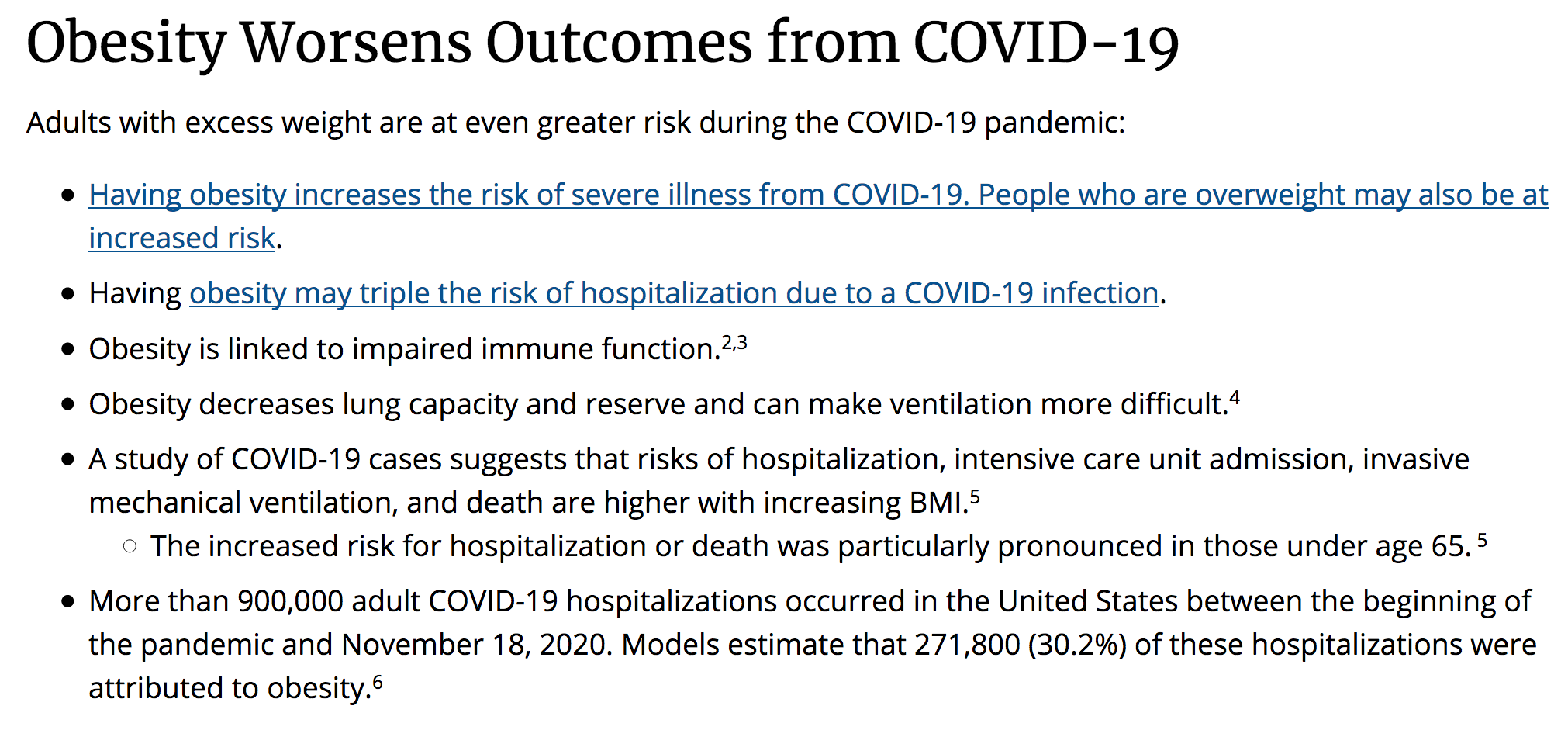 Sure, those experiences don’t make it better for fat people, but obesity is an actual, real problem. It greatly increases mortality risk for Covid, too, of course. Straight from the CDC: