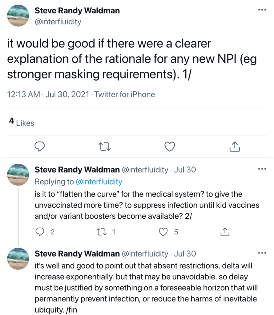 I agree. But I guess now that makes me a “Covid denier.” This all started with the Zero Covid fantasy codswallop but now it’s just misdirected piety that will be really hard to uproot. And of course it’ll make the right people massively wealthier if they can convince us all to hide inside again, so there’s that.
