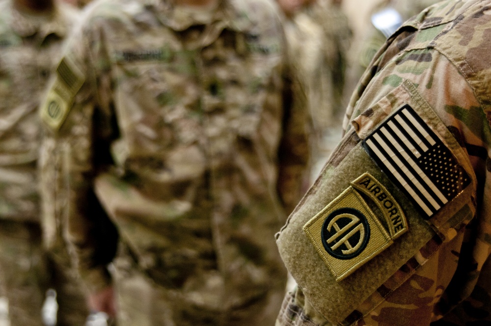 That’s an incorrect 82nd Airborne Division unit patch on her left shoulder, i.e., not the whole unit patch. It actually looks like this: