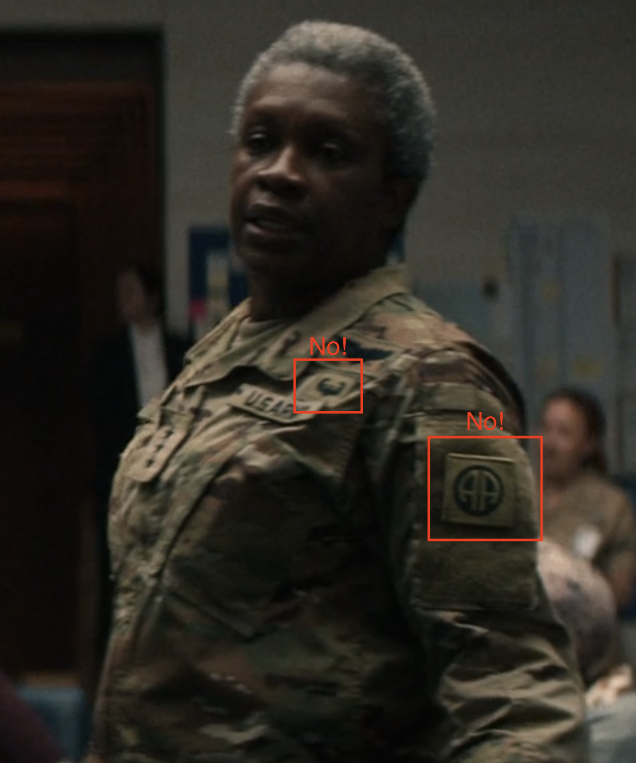 And the worst part of that jacked-up uniform is that no fucking paratrooper in the history of ever would wear a damn Air Assault badge instead of their paratrooper wings! It would just never, ever happen. They might wear their Air Assault wings and the paratrooper wings, but not wearing them at all? Just. Would. Not. Happen. I tried to get into Air Assault school but never made it. If I had, I would’ve worn that badge proudly but my jump wings would’ve stayed right there where they were.