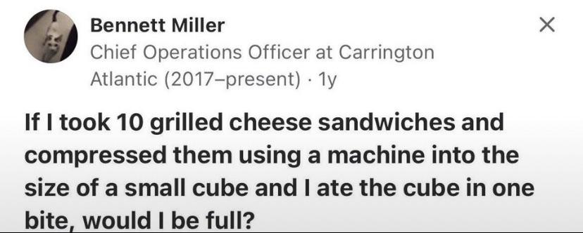 So if someone hands you 10 grilled cheeses in the form of a small cube, don’t eat it! ๐