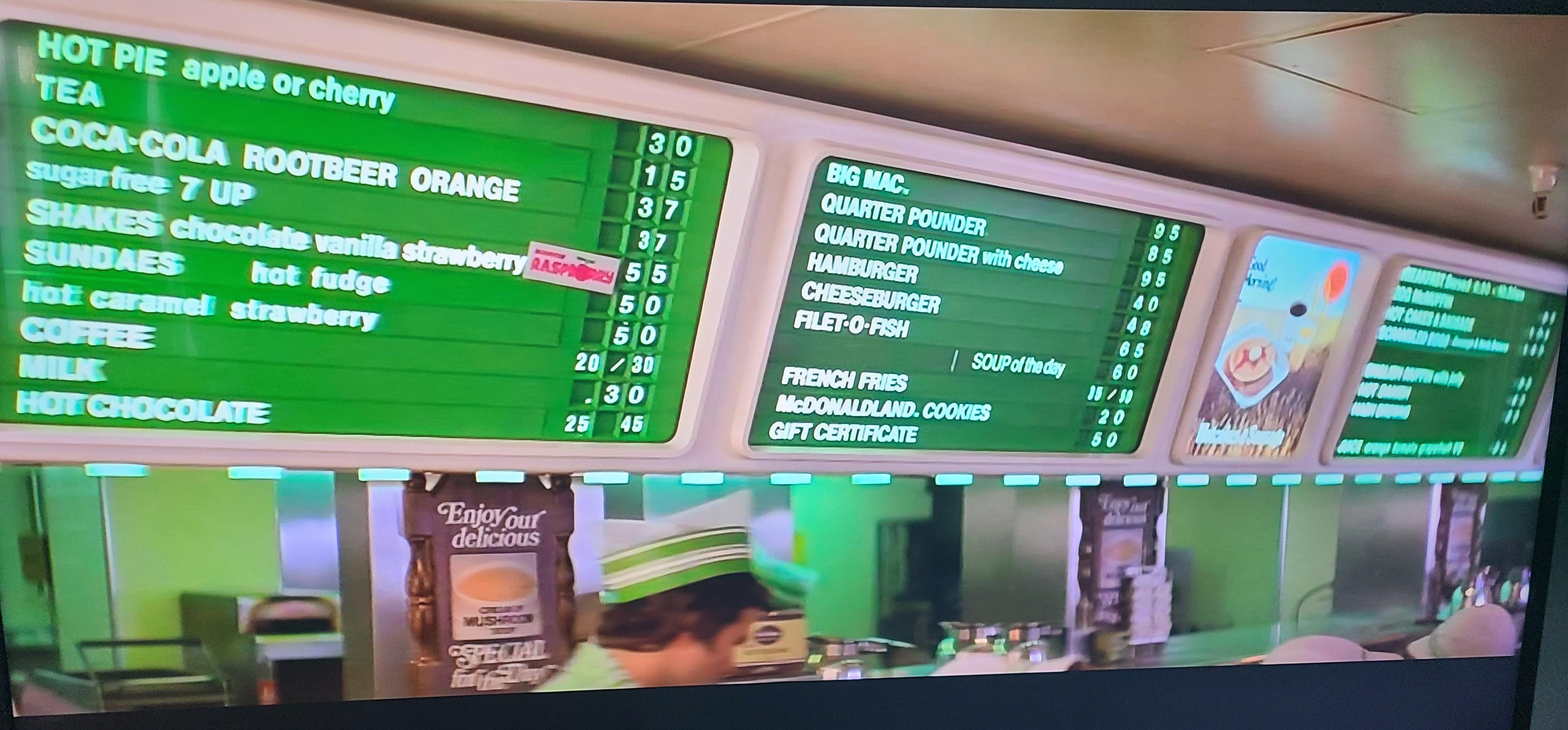 I remember when it looked like this. I believe they used some variation of this into the late 1980s, though in most places it was tan and not green. That Big Mac for $0.95 would be $4.24 in today’s dollars. In reality, actual Big Mac prices seem to be a bit higher than that in most places.