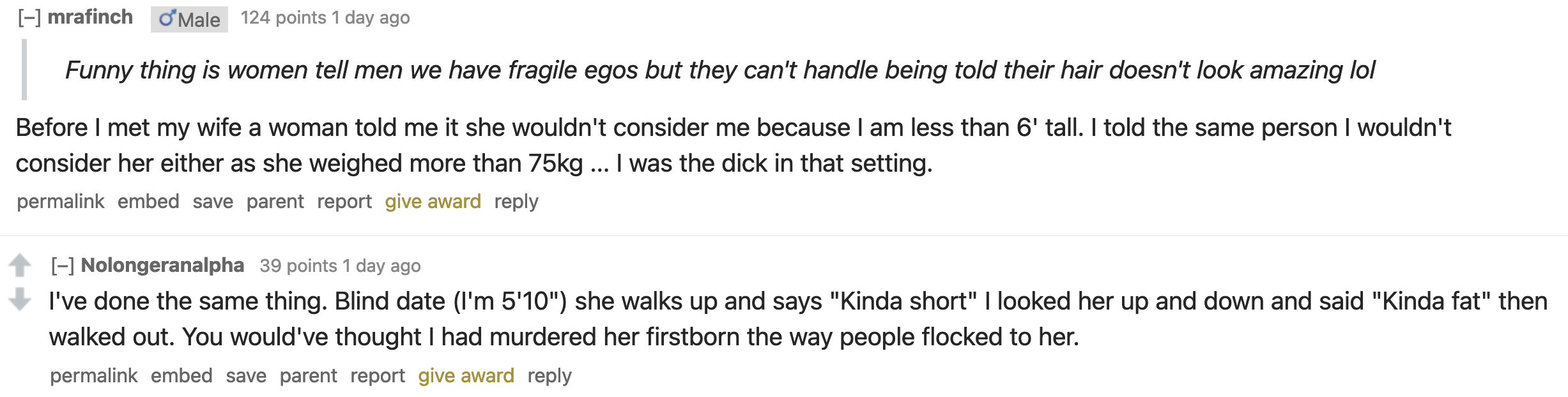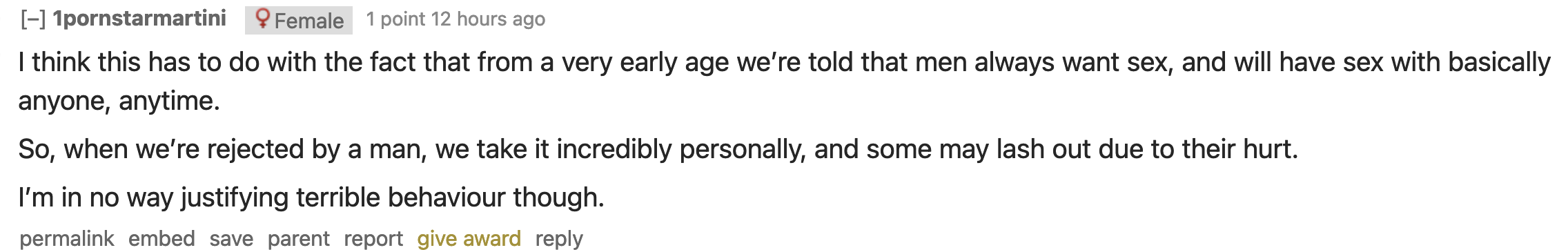 Not every woman does this, of course. But all too many do. I think her take is accurate regarding why women do this, though: