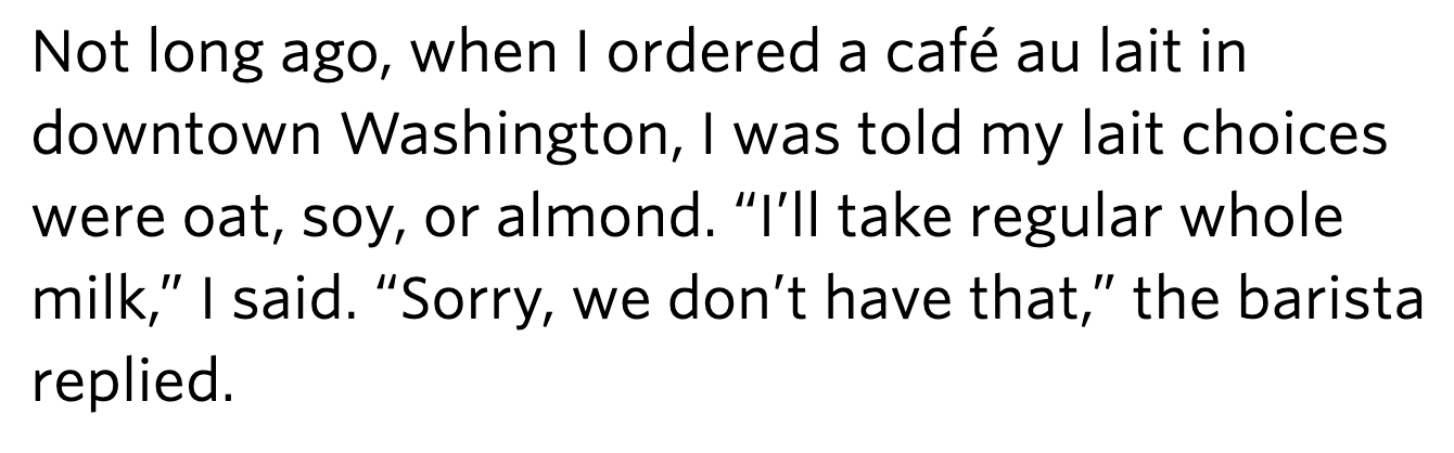 We noped right on out of there. (I donโ€™t mind soy milk, but damn, who wants anything from a cafรฉ that doesnโ€™t even have actual milk? And cafรฉ au lait without true milk sounds purely evil. Blech.)
