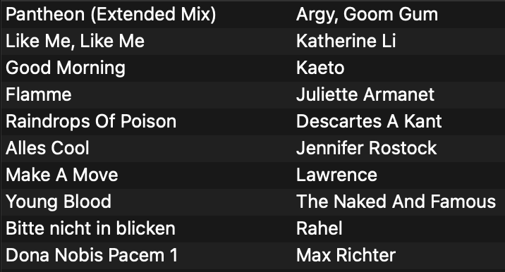 The first ten on todayโs playlist: