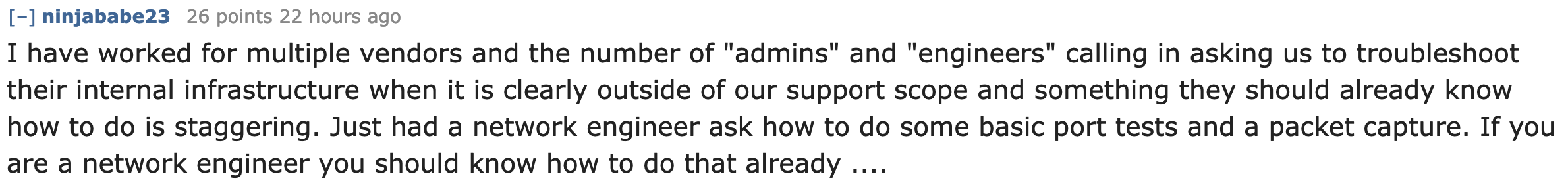 Nevertheless, I was often off the books tasked with fixing entire large companyโs networking environments, DNS, Active Directory, virtualization environments and Citrix to make our small application work. And I know most of you who read this are not in IT, so this would be like having a plumber come around to fix a faucet and then have them do your interior decorating, tutor your kids on algebra, replace your alternator in your Buick, and also re-do your landscaping. Itโs insane.
