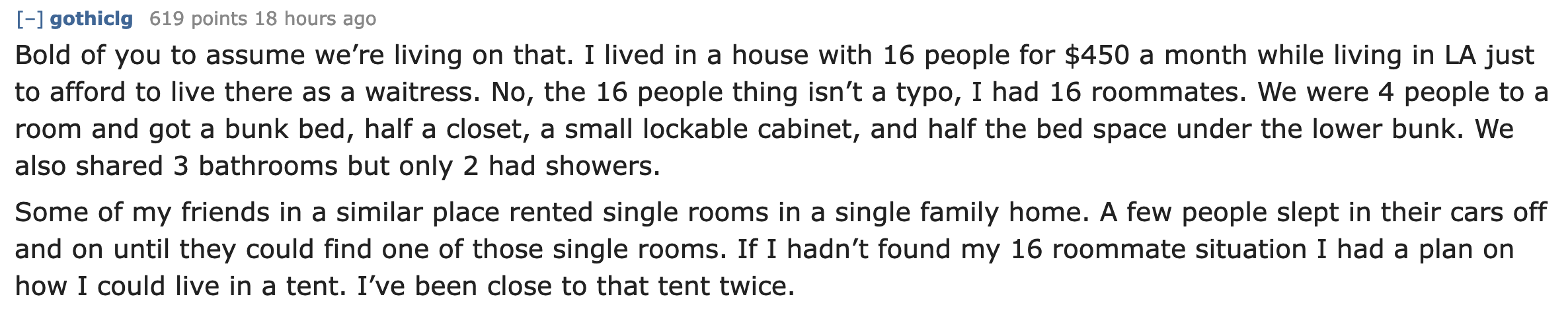 And people treat it as some unsolvable mystery why homelessness is so prevalent now. It’s housing costs, duh.