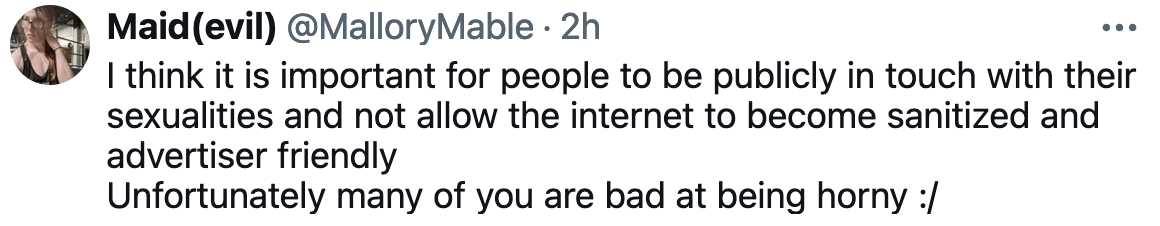 Well, for men anyway we are told that any horniness means you are a creep and that any expression of sexuality means you are dangerous and terrible. Thatโs the modern consensus. What will challenge it?