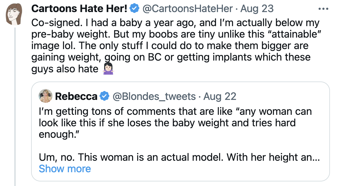Indeed, it is possible if one wants to do it. Admittedly she had good genetics, but I had a friend in the 90s, 36 years old, who had a kid and a year later you could not tell she’d given birth. She was slightly below her pre-pregnancy weight afterward. And to answer the objection that “she was just wearing flattering clothes,”ย I took fully nude photos of her (at her request) after she gave birth so I saw exactly what she looked like.