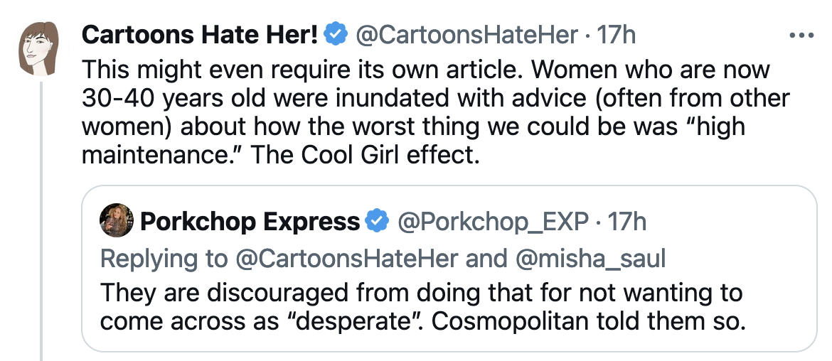 I liked Gone Girl too, but the โCool Girlโ discussions ended up being another way for women to self-infantilize, to claim all the boons of feminism while accepting none of the accountability or responsibility that increased power and respect entails.