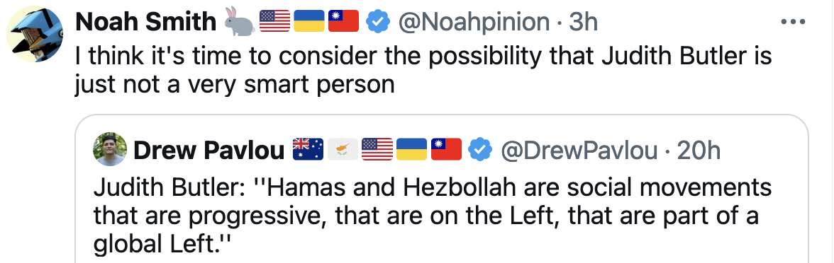 That statement of Butler’s is fully of dumbassery, sure, but in my experience most people are only smart in one or two areas, if that. The rest they are just utter blithering idiots, less clueful than even the average kindergartner.