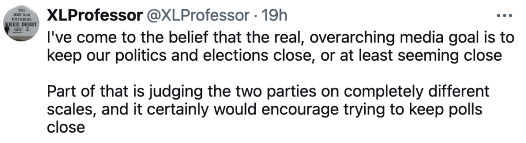 And to be clear: this would happen if Harris were the one doing insane things and Trump were the normal one. The media needs the election to be close to make that cheddar. Thatโs whatโs going on.