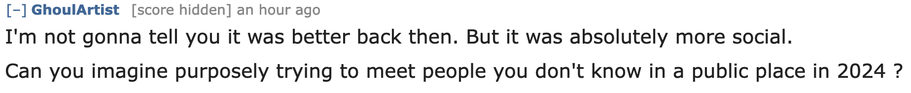 Many of the things we did then as a matter of course would get you ostracized and/or arrested now. Too much prudery and clownery these days; smartphones and social media were a huge mistake.