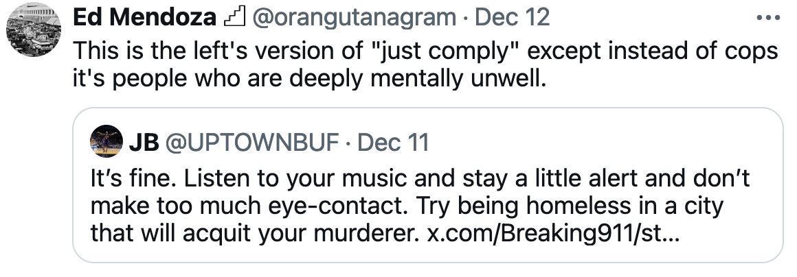 Let the Assault December 13, 2024, 11:35 PMDecember 13, 2024, 11:36 PM Chill Clowns โJust let the assault happen as a nice treat for the mentally ill vagrant. Itโs your duty as a leftie.โ