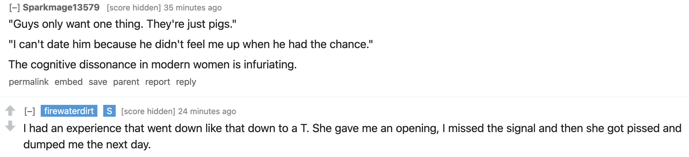 Ha, yeah. I think every guy has had this happen. Itโs amazing how quickly it can go from, โAll you want is sex!!!!!!!!!!!!!!!!!1111111111โ to โWhy didnโt you want SEX??!??!?! What is wrong with you, are you gay??!?!?!?!?!โ