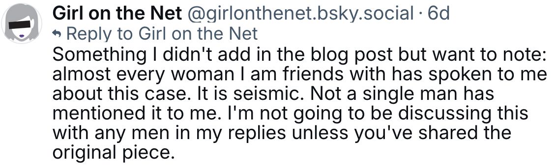 Men have been told repeatedly and with great vitriol in the past to butt out of such discussions as it isnโt about us and our opinions are irrelevant, even if they support fighting against such things as the horror of what was done to Gisรจle Pelicot.