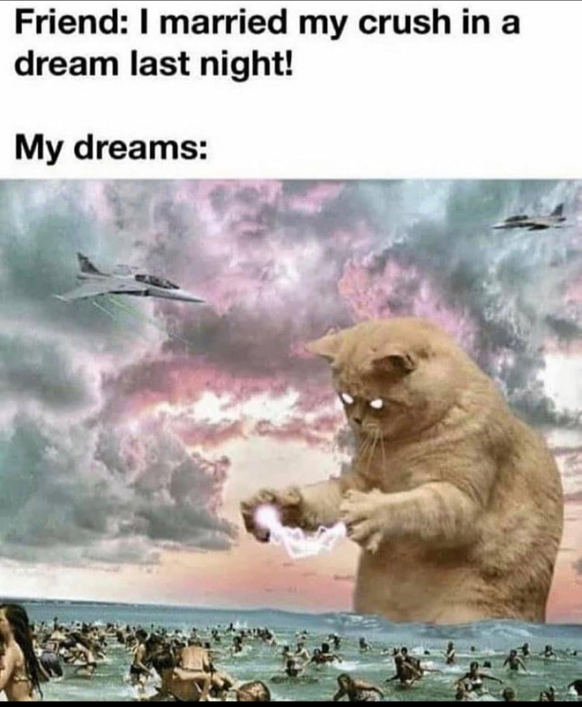 Cattack December 29, 2024, 5:05 AM Chill Amusing Same, same. Or Iโm being attacked by the werewolves again. Or Iโm launching nukes on aliens from the space station.