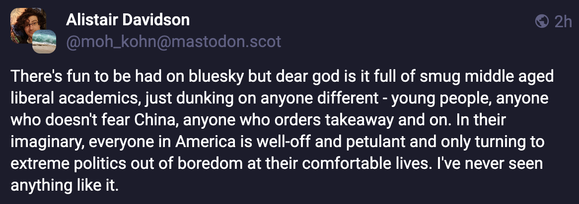 Bluesky is an absolute liberal clown shitshow echo chamber of the very worst kind. It has some of the goofiest goofballs anyone has ever seen.