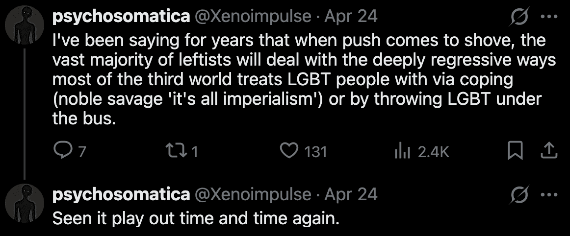 Imp of Reason April 27, 2025, 12:00 PMApril 27, 2025, 12:01 PM Chill Lying Liars That is indeed how a lot of the left operates. They even defend Islamic honor killings very frequently and the hijab as โfeministโ as a matter of course. Itโs insanity.