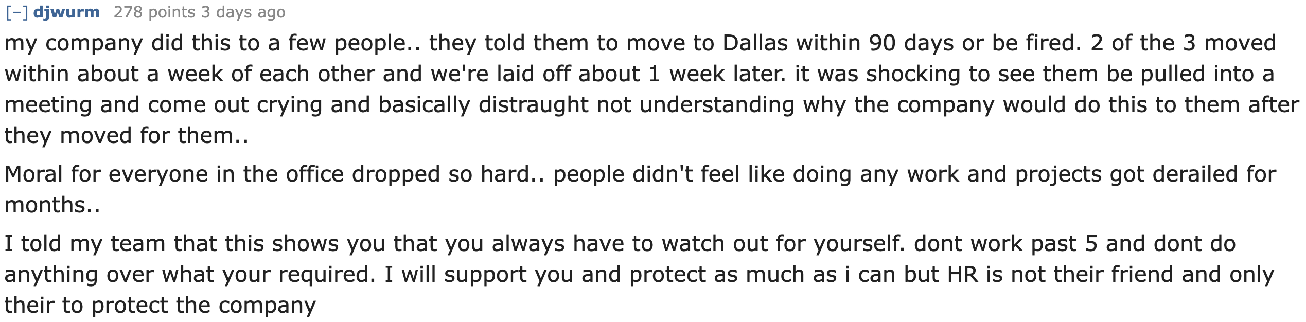 Never, ever move for a company as part of RTO especially, since RTO these days is always just a covert layoff scheme. This is what will happen to you:
