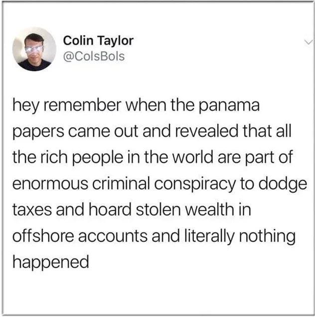 The journalist who uncovered it all was assassinated by car bomb. It is comparatively rare for rich people in the West to resort to outright murder. Usually, it’s just intimidation and loss of professional position and/or fake sexual assault accusations and the like. That Daphne was assassinated in an obvious way shows how very much trouble she caused the plutocrats.