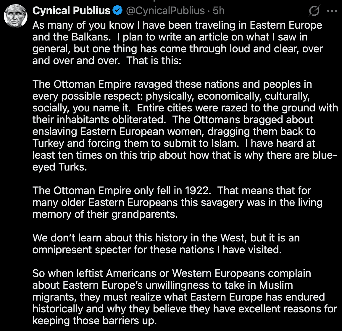 A rarity: someone who actually knows a bit of history. Eastern Europe is probably the only hope to resist the Islamic reconquest of Europe.