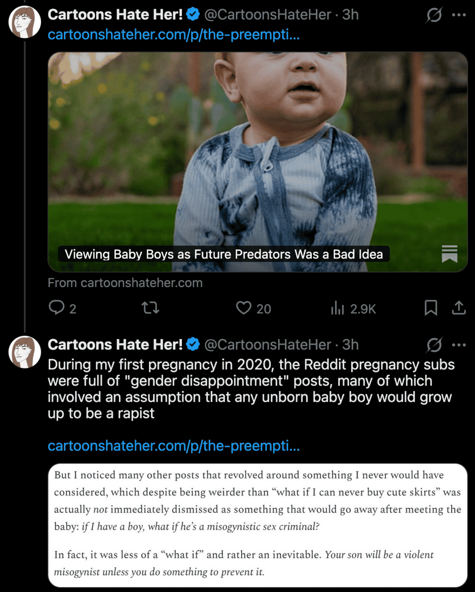 This was the height of โall men are evil default rapists from the moment they are bornโ that still hasnโt disappeared, just gotten somewhat milder. Now itโs โnearly all menโ instead of โabsolutely all men, period.โ