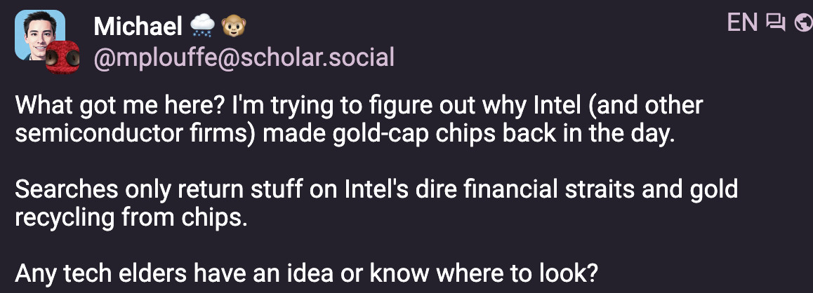 I guess I am a tech elder now, and the reason for gold is that it was corrosion-proof and is easier to solder and wire-bond (the gold was present in more than just the cap). The older process (prior to gold) with tin and whatever else, was prone to oxidizing and corroding.