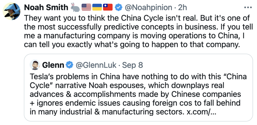 Noah is correct. The โChina cycleโ was widely denied because believing it was real was associated with racism, partly due a very successful Chinese propaganda operation focused on PMC liberals that equated believing in the cycle with such. That influence operation worked and was fairly brilliantly done by the CCP in that it got a lot of bang for the buck renminbi.