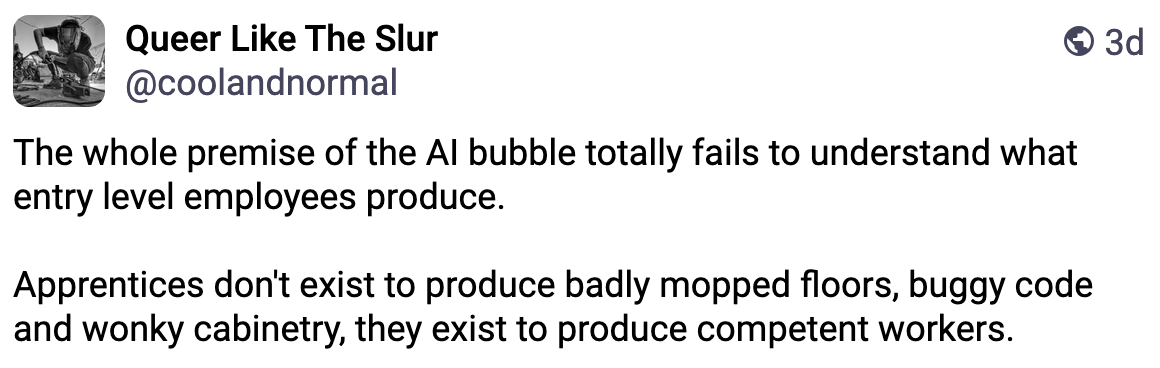 Oh, fucking clown. Real product compensation is not a good measure of inflation or compensation as the average worker experiences it. This is just an over-educated attempt to sneak something in that most people won’t know what it means to make himself look clever while dunking on his enemies. Well I’m smarter than he is by far and here’s why it’s bunk.