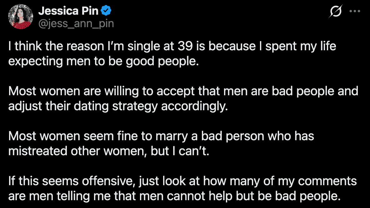 I’ve not looked into it statistically and probably will not, but I’d bet pretty big money that the net effect of #MeToo was a fairly large reduction in relationship and household formation.